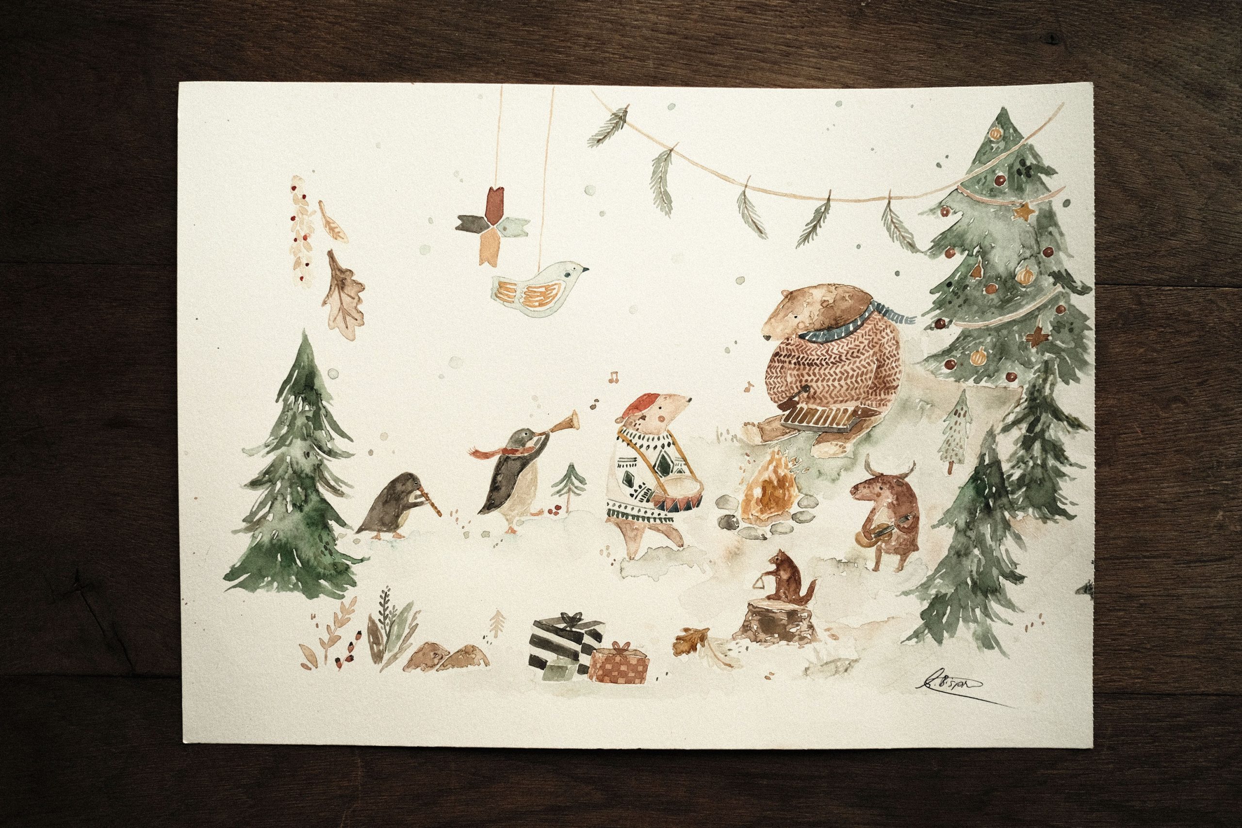 Die Tiere feiern Weihnachten | Original-Illustration