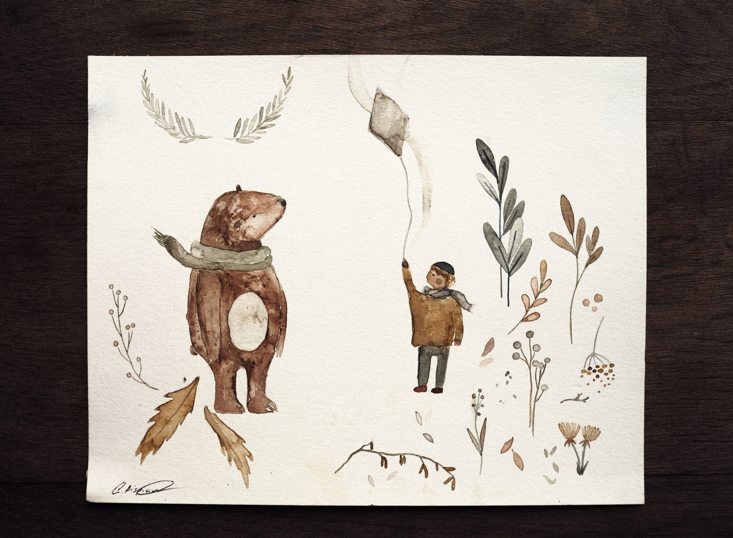 Handgemalte Aquarell-Illustration aus dem Kinderbuch „Souta, Iver und der Wind“, auf hochwertigem Aquarellpapier, signiert.